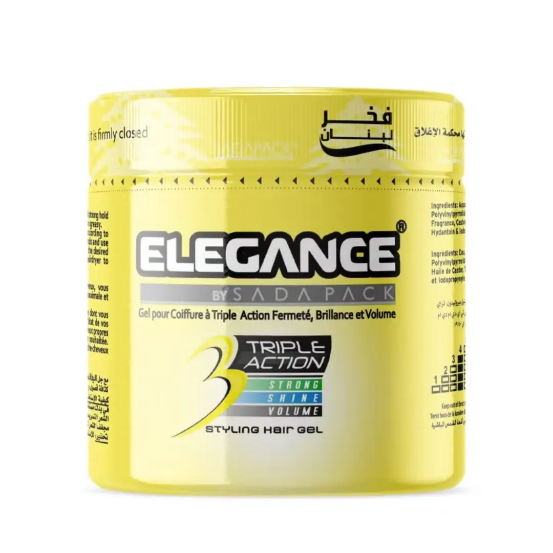 احصل على قوة تصفيف احترافية مع Elegance by Sada Pack جل تصفيف ثلاثي التأثير بحجم 250 مل. صُمم لتوفير تثبيت قوي للغاية، ولمعان رائع، وحجم إضافي، ليحافظ على تسريحة شعرك المثالية طوال اليوم. غير لزج، خالٍ من القشور وسهل الغسل، مثالي لجميع أنواع الشعر والتصفيف اليومي.