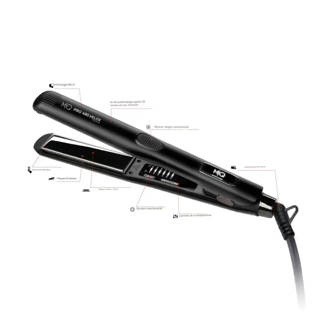 Boost your salon efficiency with the MQ Professional Pro 480 Velox hair straightener. Achieve sleek, shiny hair in fewer passes with titanium floating plates, rapid heat recovery, and 480°F precision. Features anti-scald thumb support, automatic smart shutdown, and long-lasting durability. Perfect for high-demand salons and professional use.