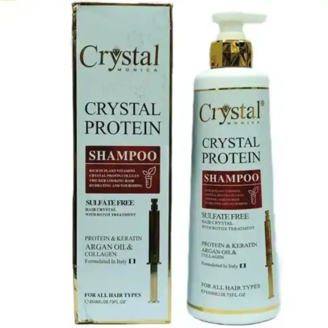 Shampooing Crystal Protein 850 ml – Réparation capillaire sans sulfate à la kératine, huile d’argan et collagène